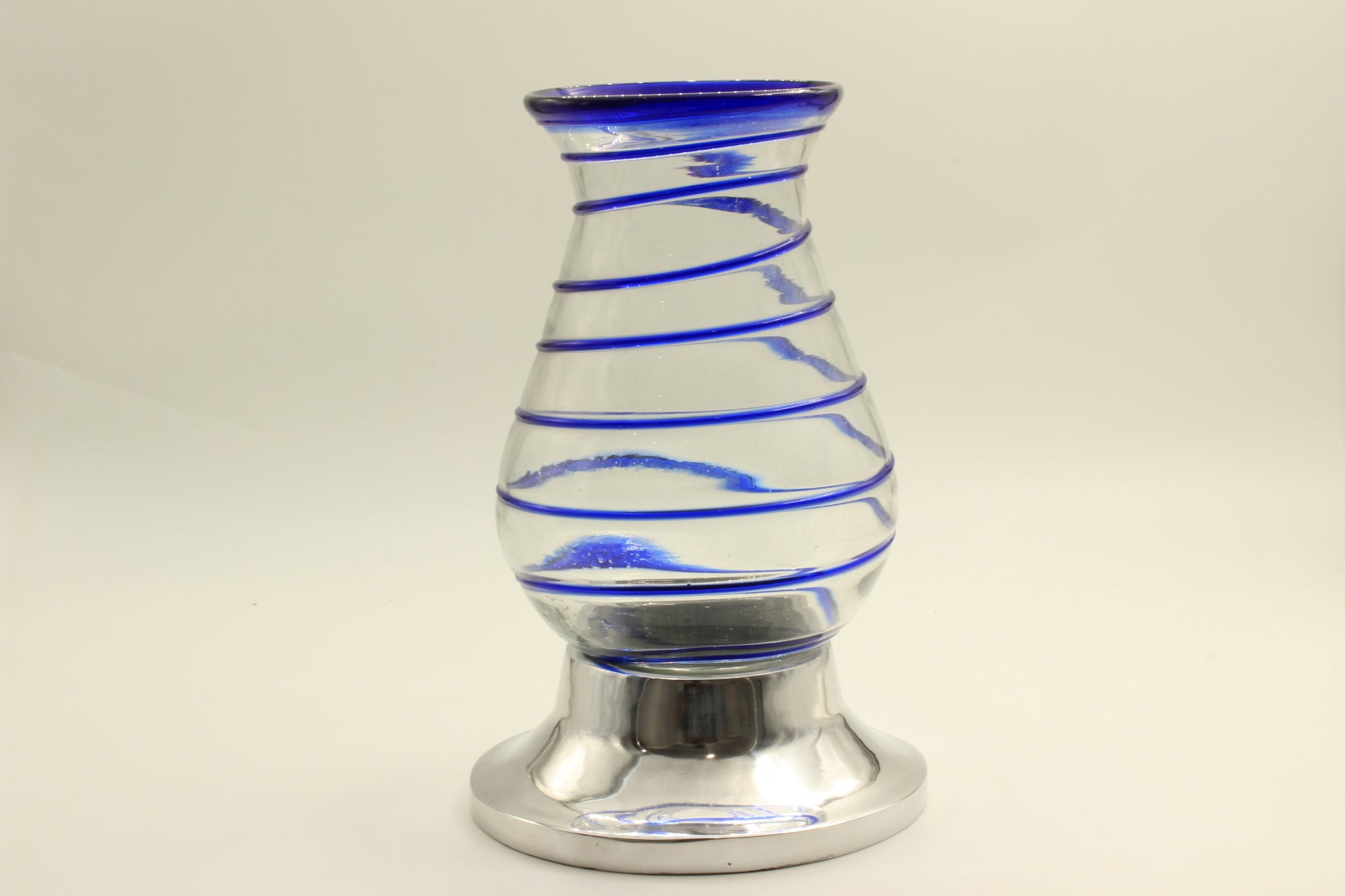 Beautiful transparent and blue handcrafted blown glass vase for decor. Only compared with the Italian blown glass techniques from Murano, the blown glass quality from Tlaquepaque in Mexico is from the best of its kind in the world. Every artist has dedicated their lifetime to master this technique, and as a result of generations of perfectioning said technique, the artists produce some of the best blown glass pieces in the world.