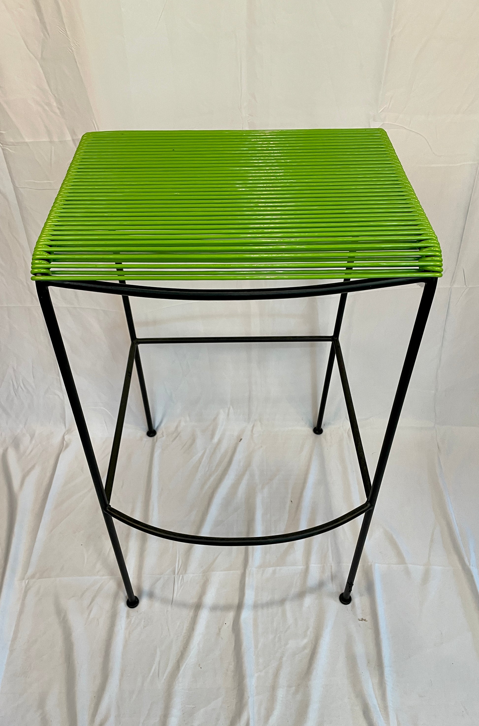 Beautiful red handcrafted tall Mexican Acapulco Monolith bar stool perfect for outdoors and indoors. Our beautiful collection of Acapulco styled furniture is designed to brighten the colors in your home, as well as introduce your home into the world of recycled material furniture and stylish decor.