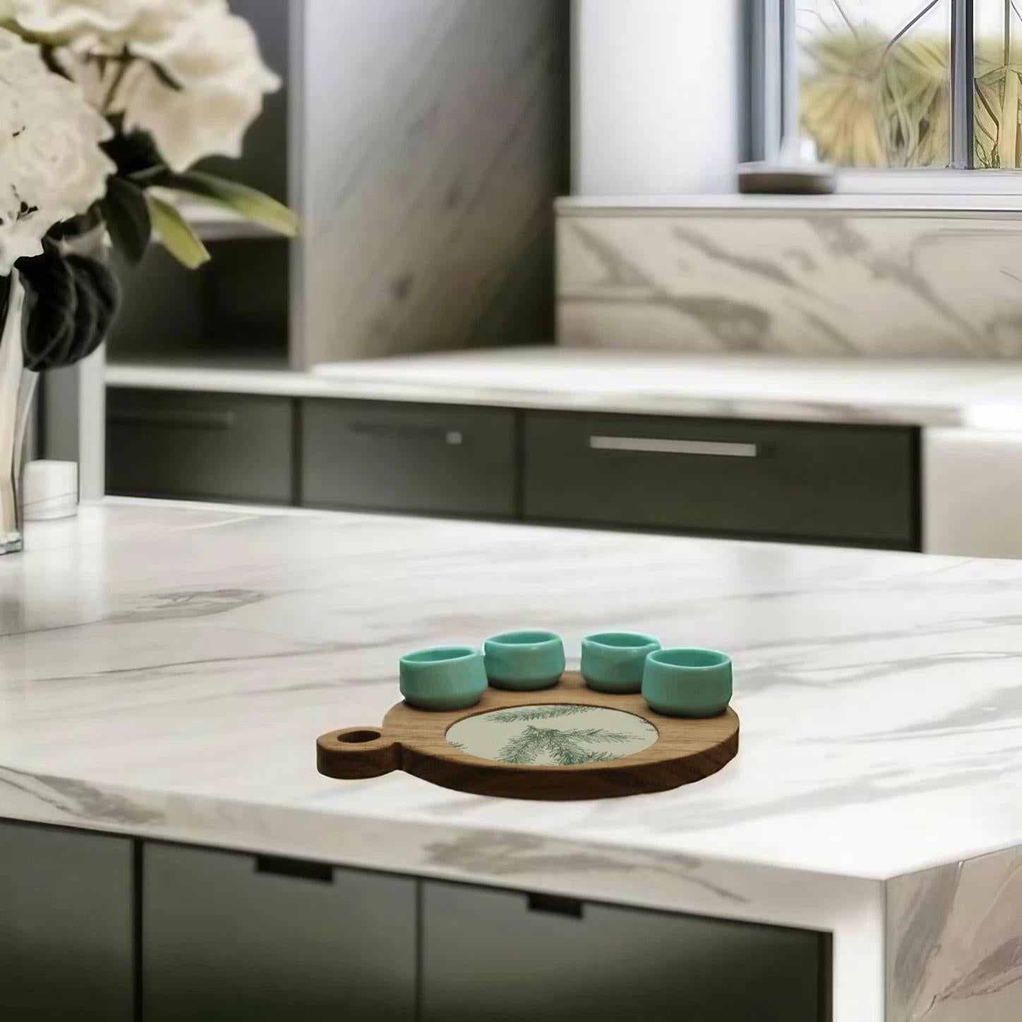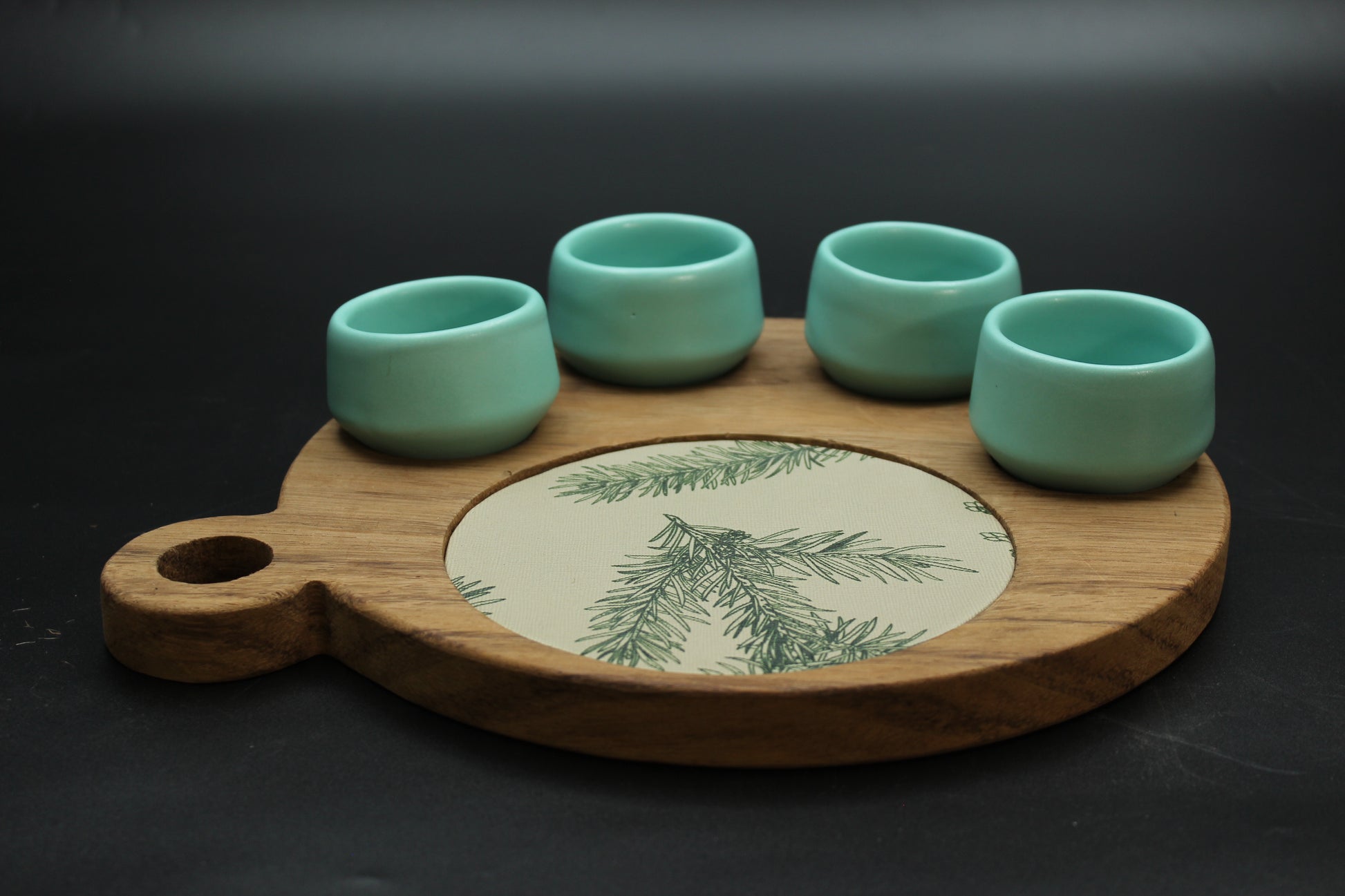 Teal Mezcalero and Floral Wood Tray Set (Set of 4)