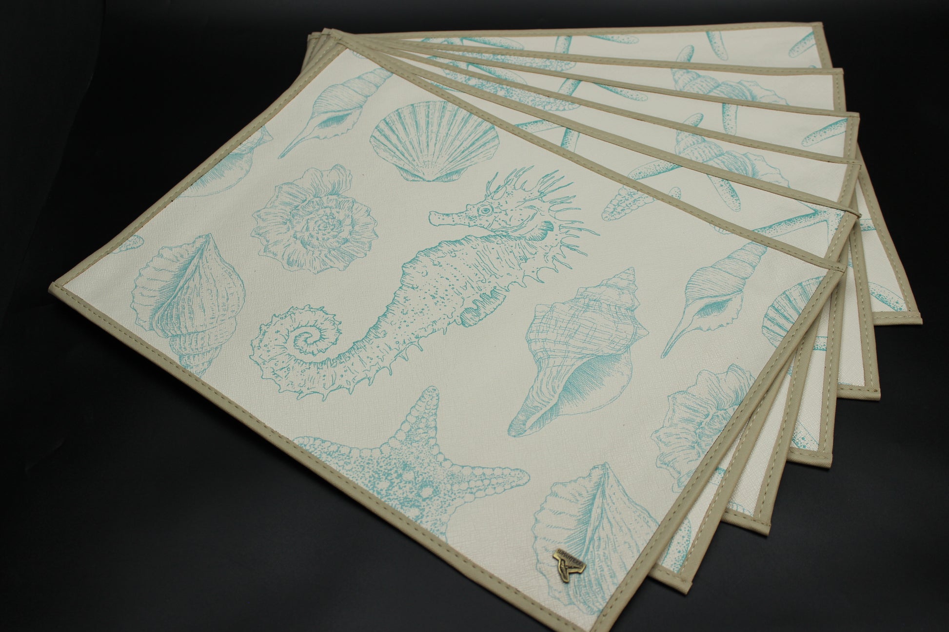 Beautiful turquoise ocean tide, synthetic leather placemat set. (6 rectangular mats) Dual-sided with 2 different designs.