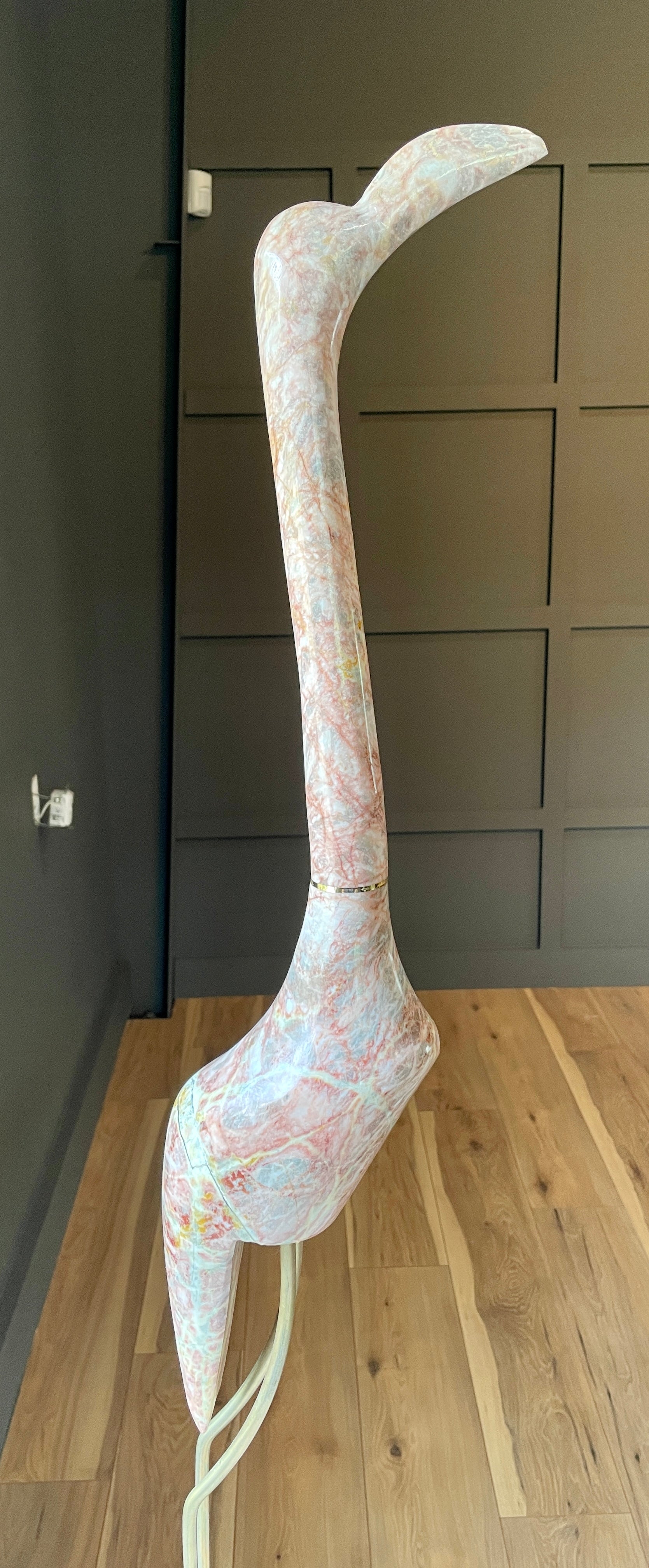 Beautiful pink handcrafted unique onyx crane. This precious stone has been carefully crafted for millions of years by the artisans that are our Mexican volcanoes, Each piece is unique in its nature. No extracted stone is the same as other ones, so our Mexican artists make sure to pick the most beautiful ones from our volcanic deposits, and therefore craft some beautiful pieces of art that will change the way your home looks and feels. In the end, aren't the small things that make the difference?