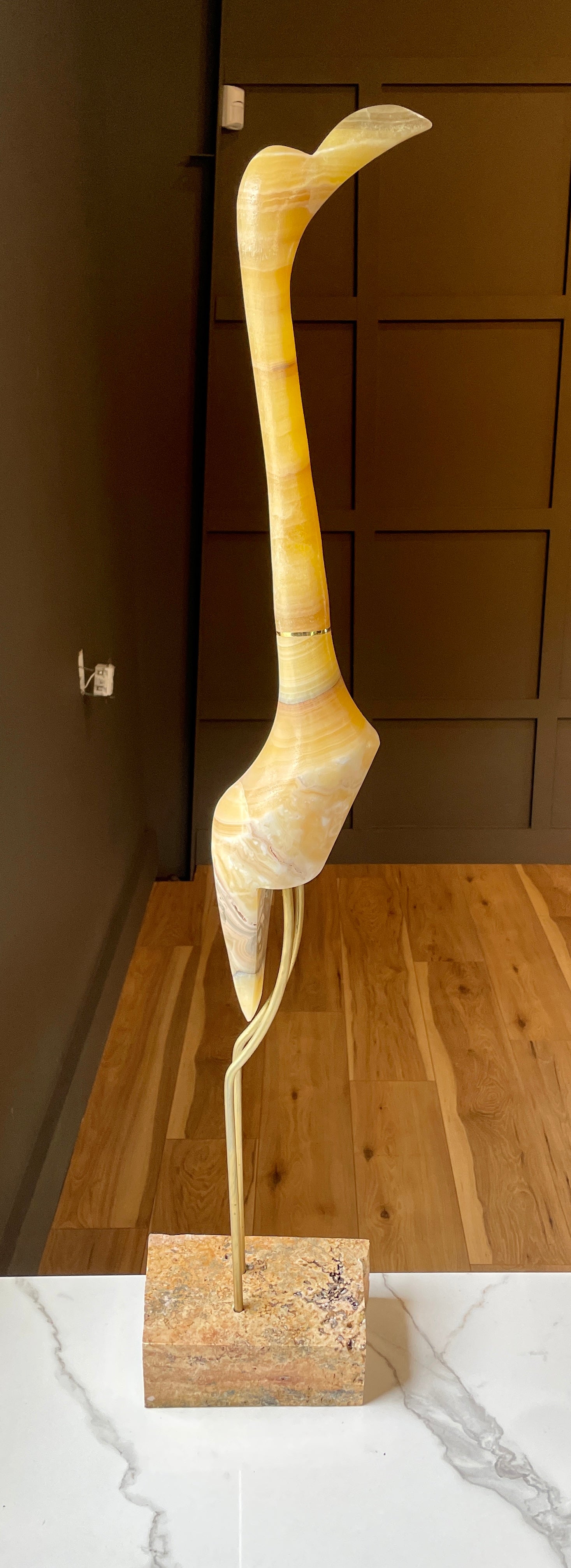 Beautiful yellow handcrafted unique onyx crane. This precious stone has been carefully crafted for millions of years by the artisans that are our Mexican volcanoes, Each piece is unique in its nature. No extracted stone is the same as other ones, so our Mexican artists make sure to pick the most beautiful ones from our volcanic deposits, and therefore craft some beautiful pieces of art that will change the way your home looks and feels. In the end, aren't the small things that make the difference?