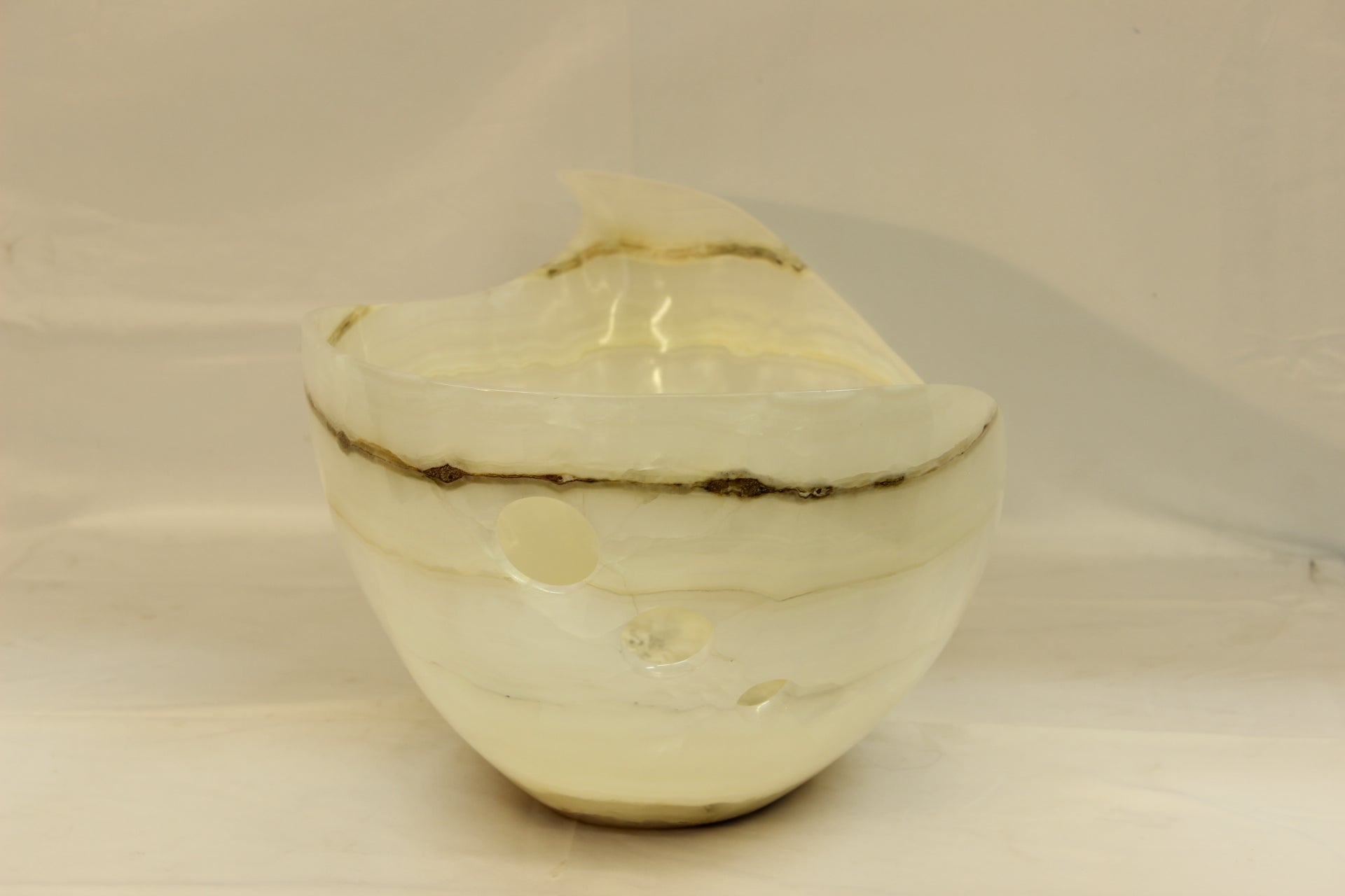 White & Beige Veined Onyx Centerpiece