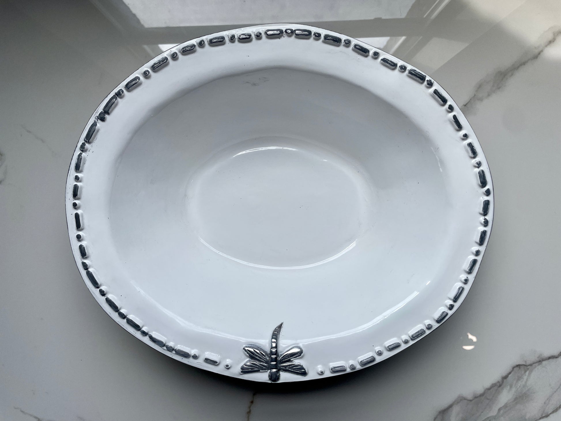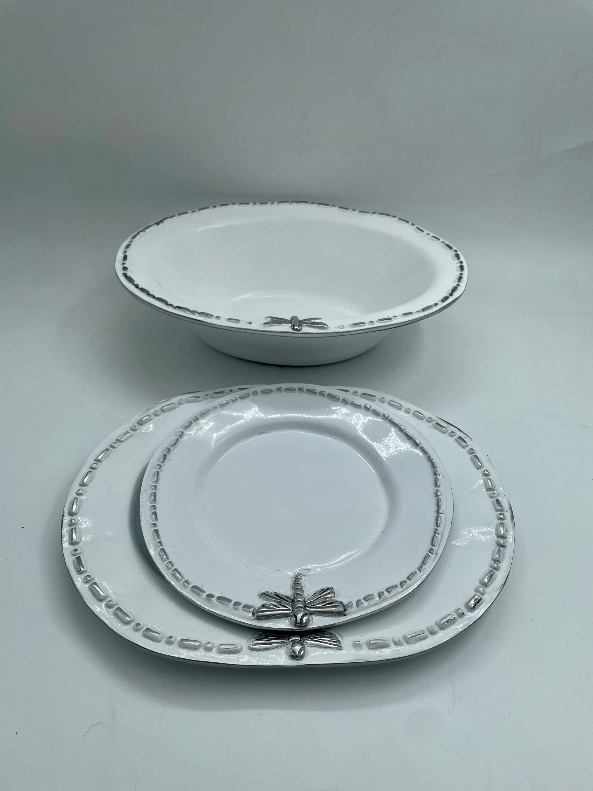 Beautiful white dragonfly styled pewter bowl set. Our beautiful and stylish Mexican Pewter collection will bring a modern touch to your home like no other. The products we offer in this collection are top of the line when it comes to Mexican artisan works. They are valued worldwide for their impressive designs and finishes. Don't miss out!