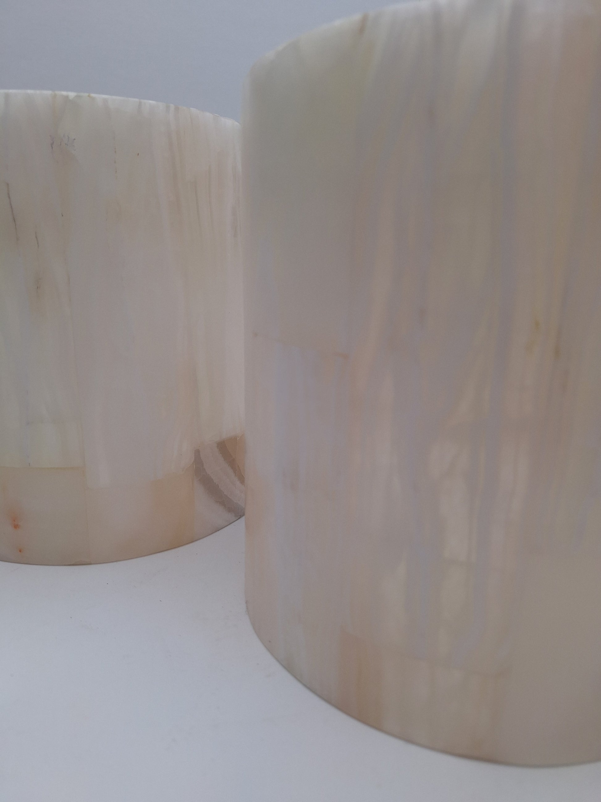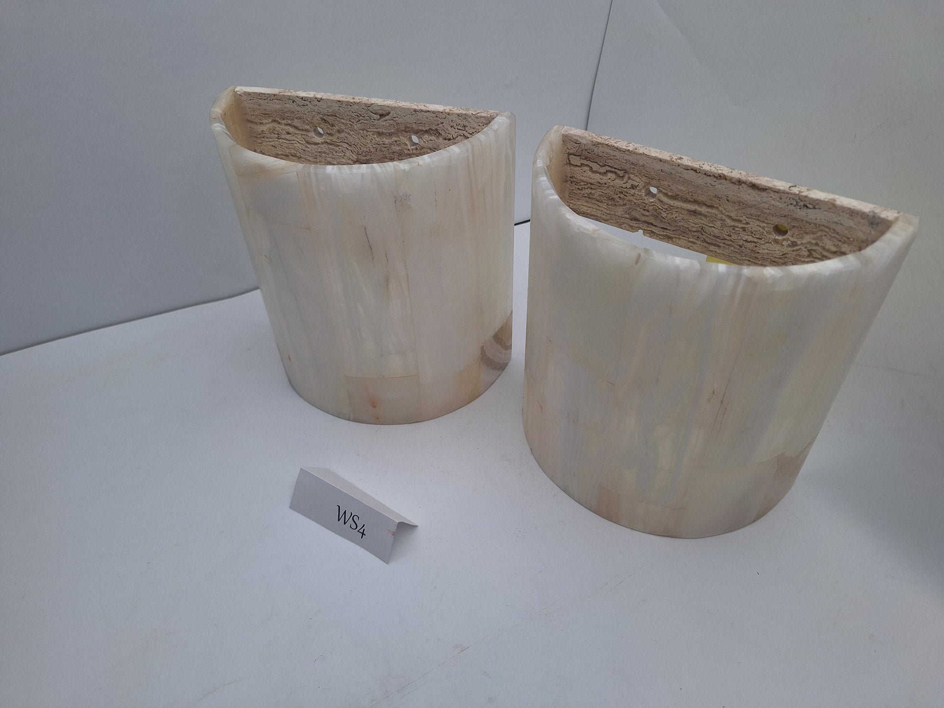 Beautiful white handcrafted decorative onyx sconce lamp. This precious stone has been carefully crafted for millions of years by the artisans that are our Mexican volcanoes. Each piece is unique in its nature. No extracted stone is the same as another. Our Mexican artists make sure to pick the most beautiful samples from our volcanic deposits, then craft the most beautiful pieces of art by using the stone's magnificent translucent properties.