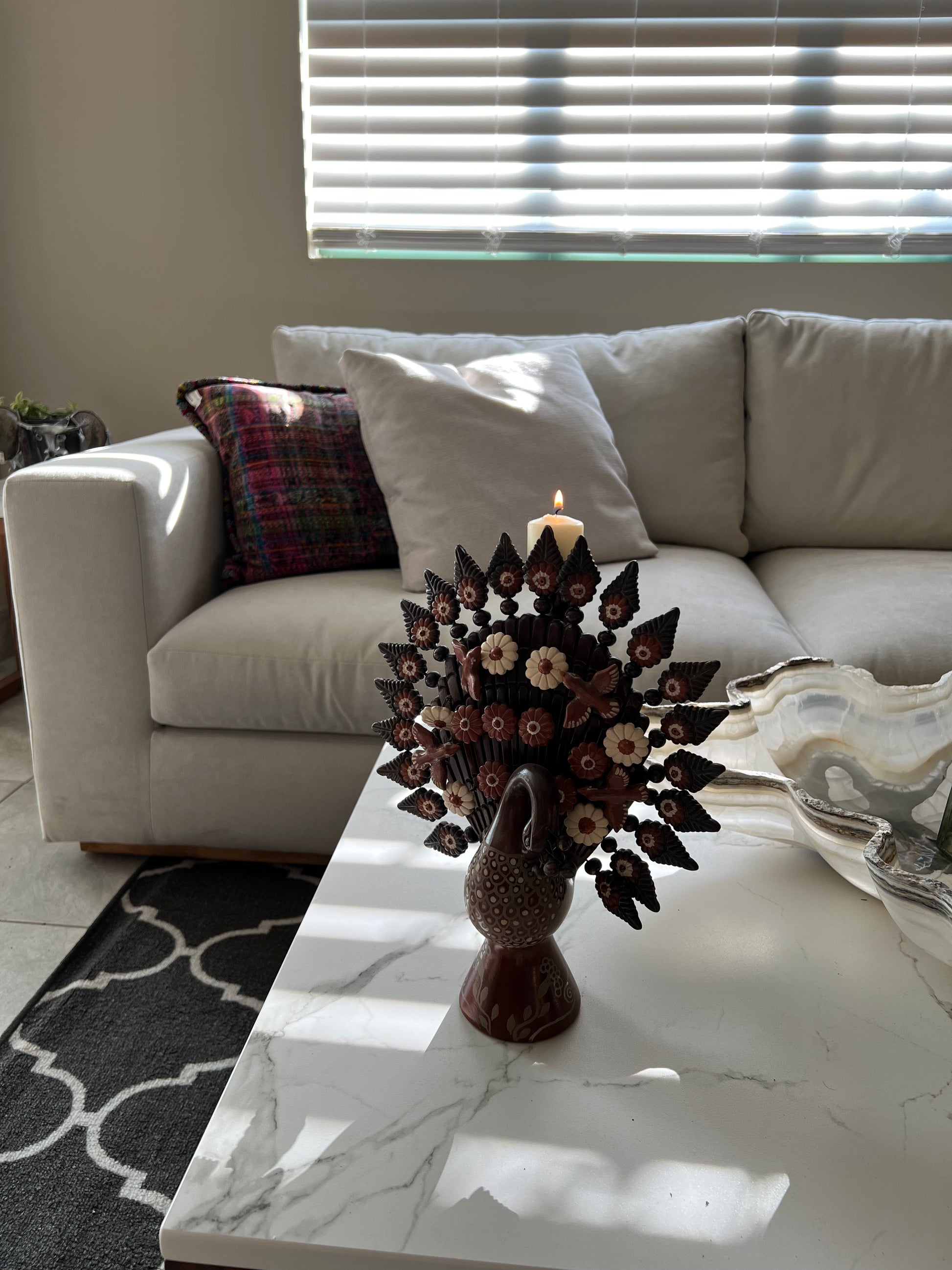 Beautiful wooden peacock candelabro figurine. Our unique Special Items collection features some of the most iconic and valued both artistic and artisan Mexican products that represent both ancient cultural decorative fashion, as well as modern high quality decorative items that will elevate your home into a stylish place, or a culturally rich environment. All coming from the best artisans and artists from Mexico.